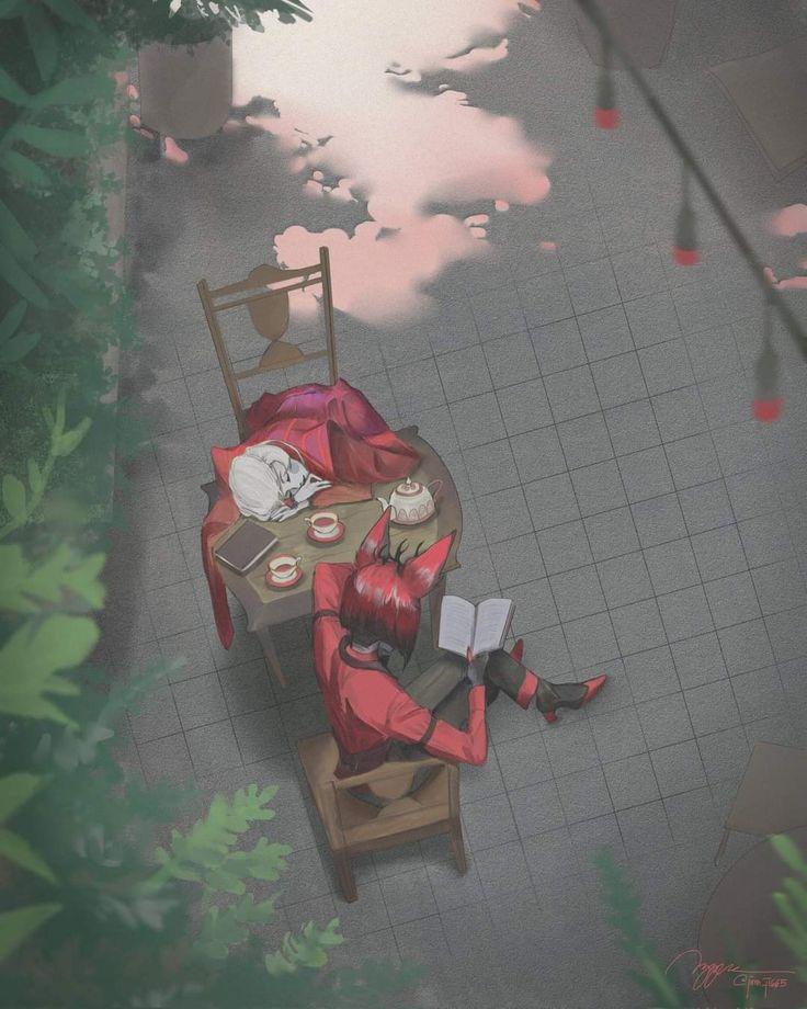 #HazbinHotel —Lo han invocado de la nada cuando estaba tranquilo con Lute para cuidar de un Adán que al final se le ha escapado al saber que la chamaca estaba sola... Ni siquiera se gastó en intentar atraparlo de nuevo... Ya había aprendido lo que los Adán eran capaces de hacer y no tenía deseos de morir...
